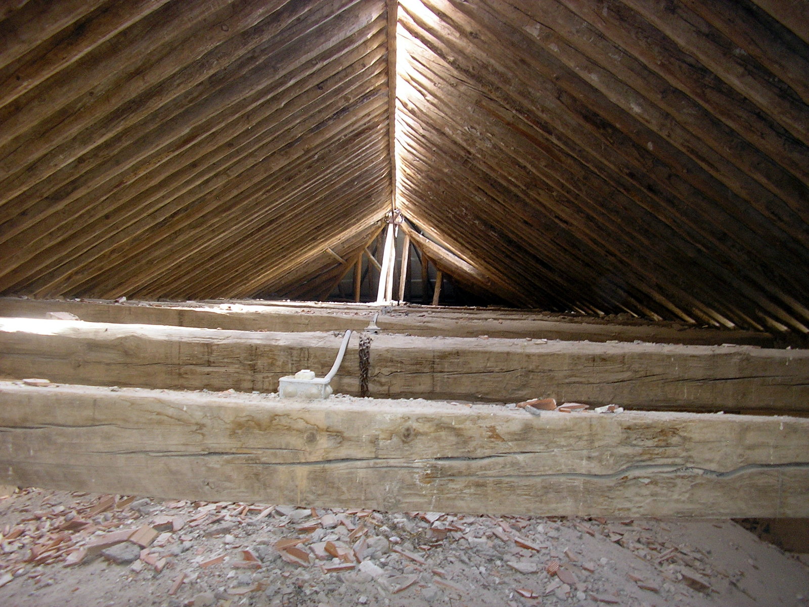 En cualquier caso lo que si parece estructura de la época que estamos analizando es el enmaderado del tejado, aunque la foto sea muy reciente, no hay constancia de obras recientes que hayan afectado a esta estructura. Es posible que ese enmaderado pueda ser identificado por alguno de los tipos concretos que se expresan en el documento.