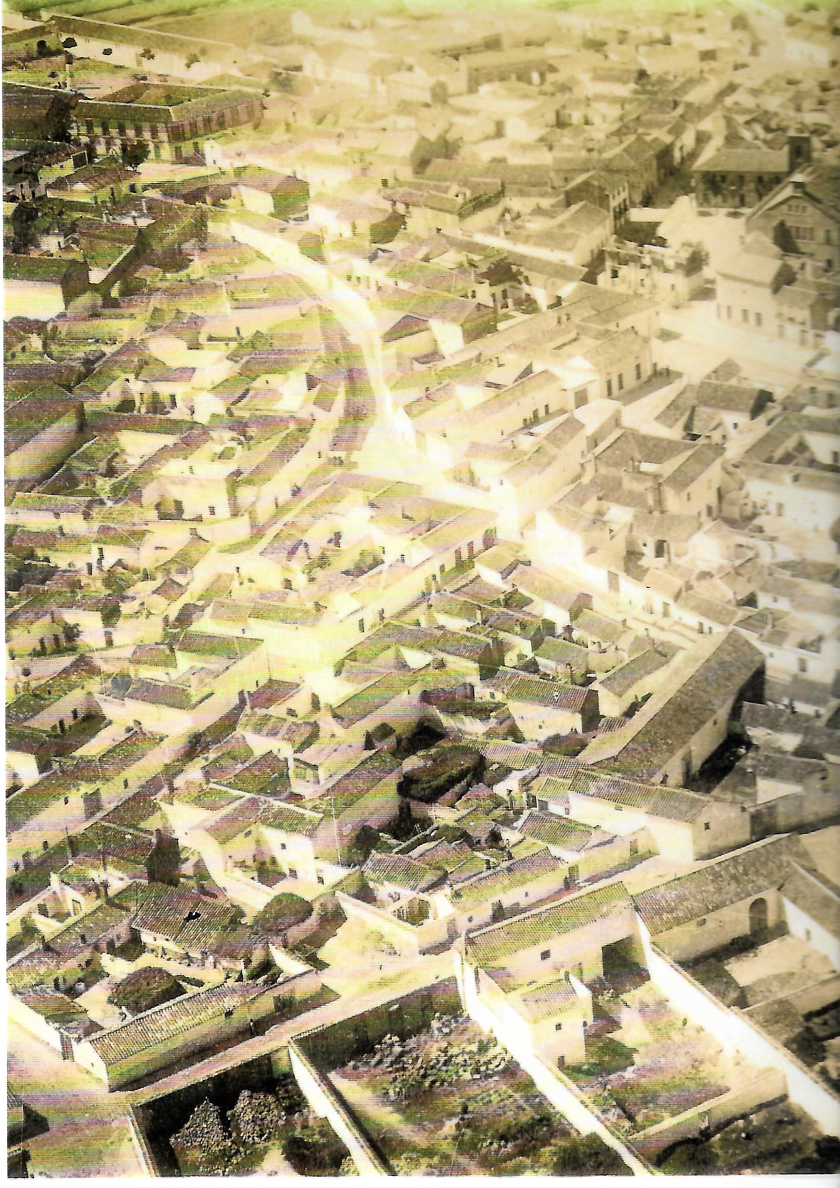 Fotografia áerea de Villarta de San Juan (1934) se observa el anchurón de la carretera en el cuadrante superior derecho, donde se encontraban los mesones ( en la fotografía ya desaparecidos.