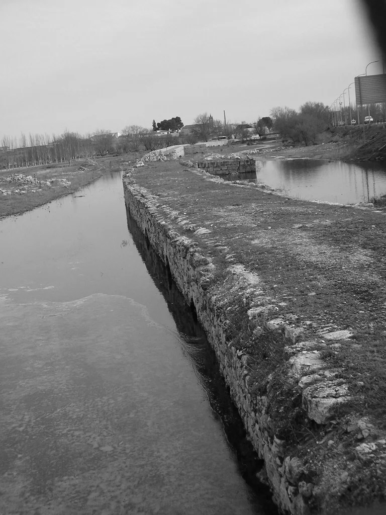 Entrada de la Cañada Real Soriana por el puente viejo o romano. Situación del puente antes de la última reconstrucción (Archivo personal)