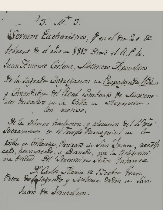 En la terminación del Sermón Eucaristico el R.P. Fr. Juan Antonio Corleon, decía: