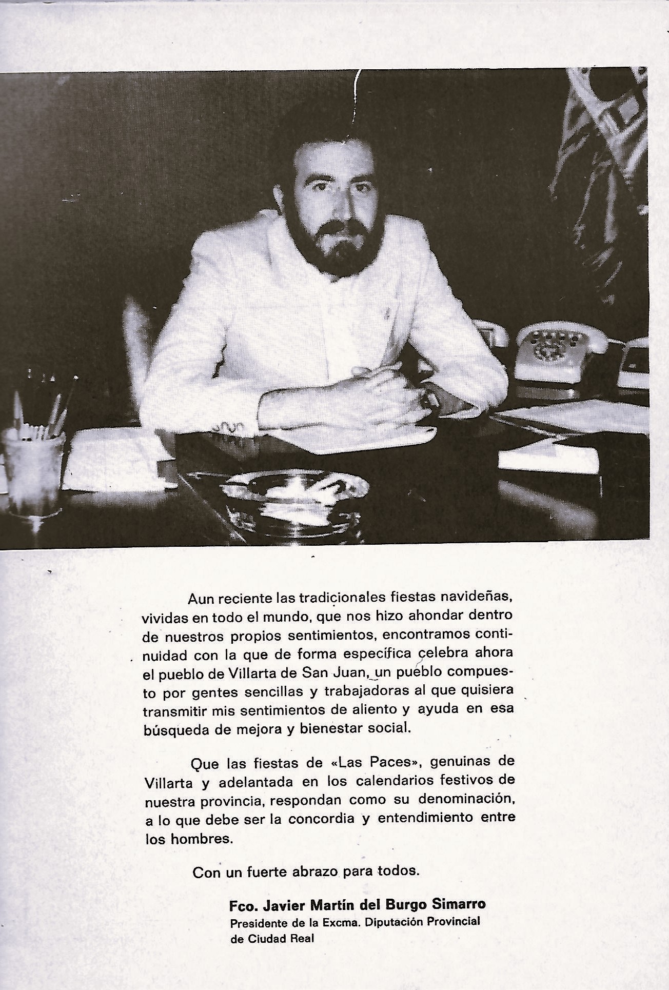 Saluda del Presidente de la Diputación 1984. Fco. Javier Martin del Burgo Simarro