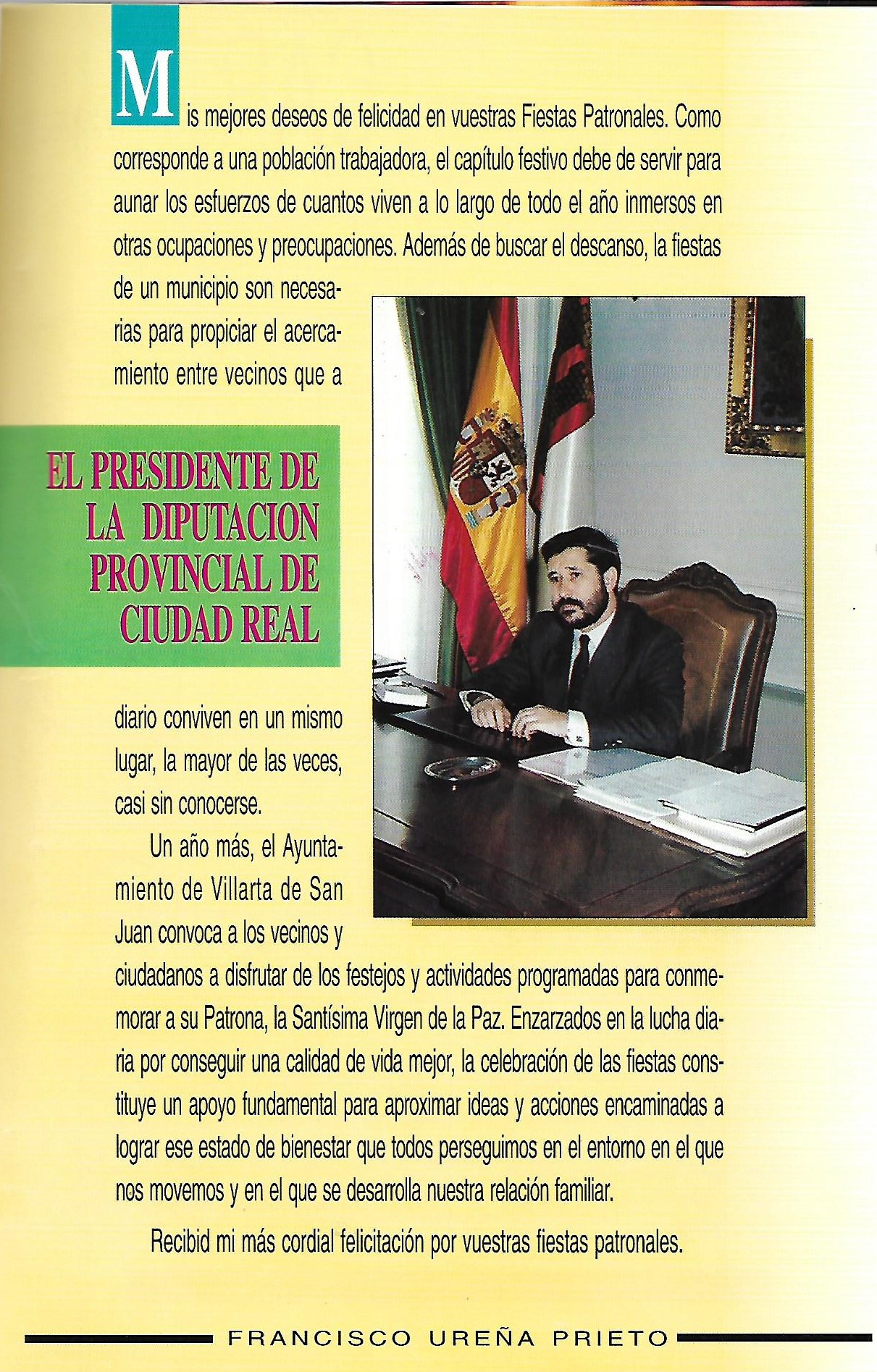 Saluda del Presidente de la Diputación Provincial 1994 Francisco Ureña Prieto