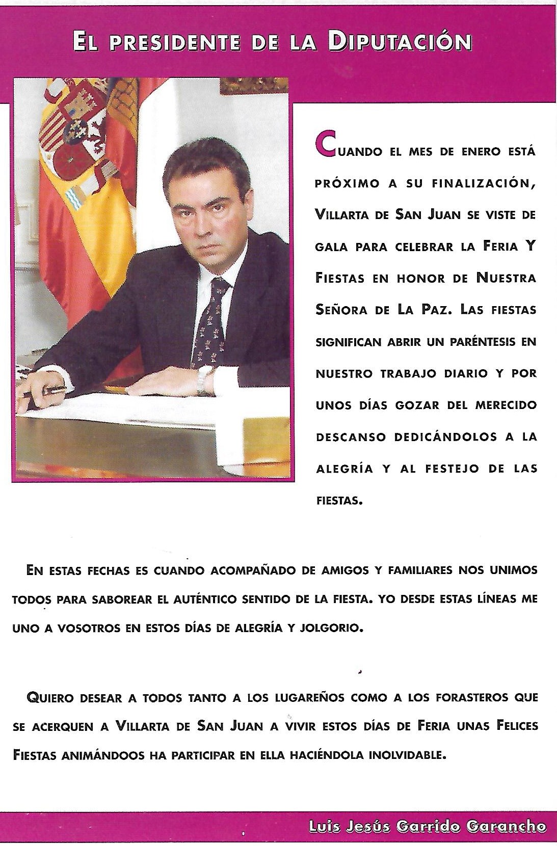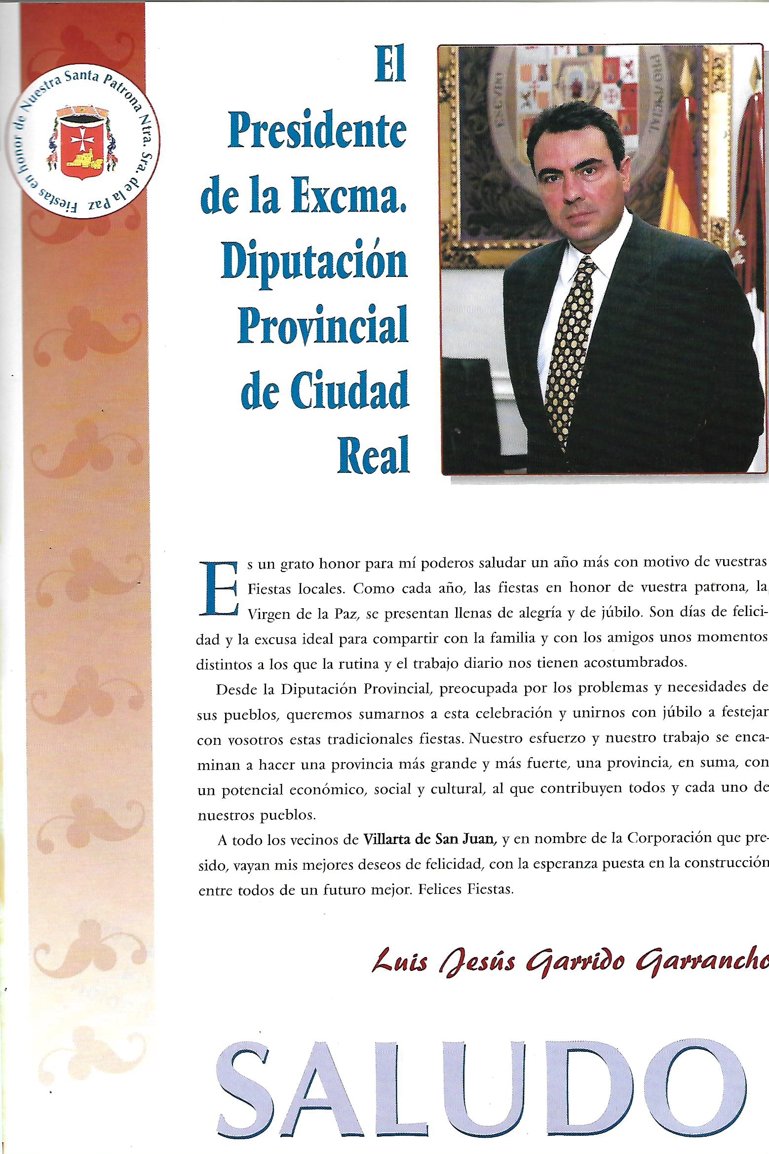 Saluda del Presidente de la Diputación Provincial 1999 Luis Jesús Garrido Garrancho