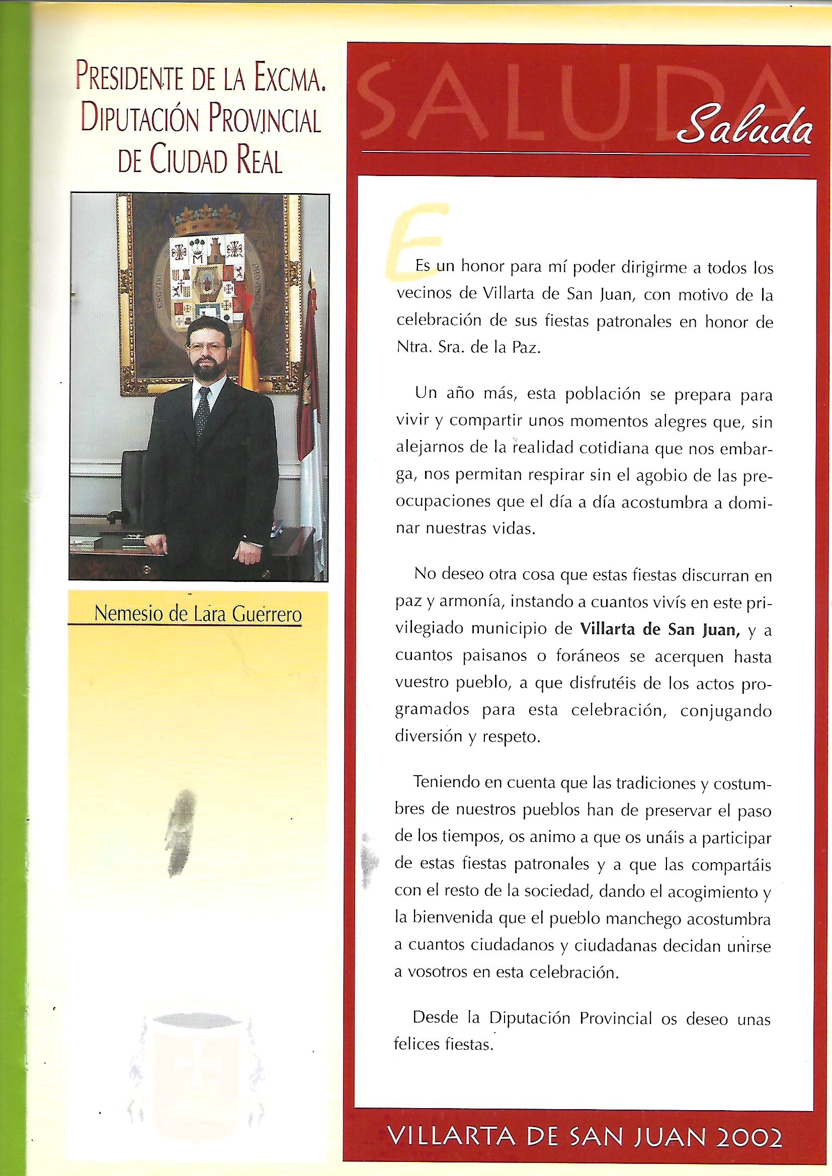 Saluda del Presidente de la Diputación Provincial 2002 Nemesio de Lara Guerrero