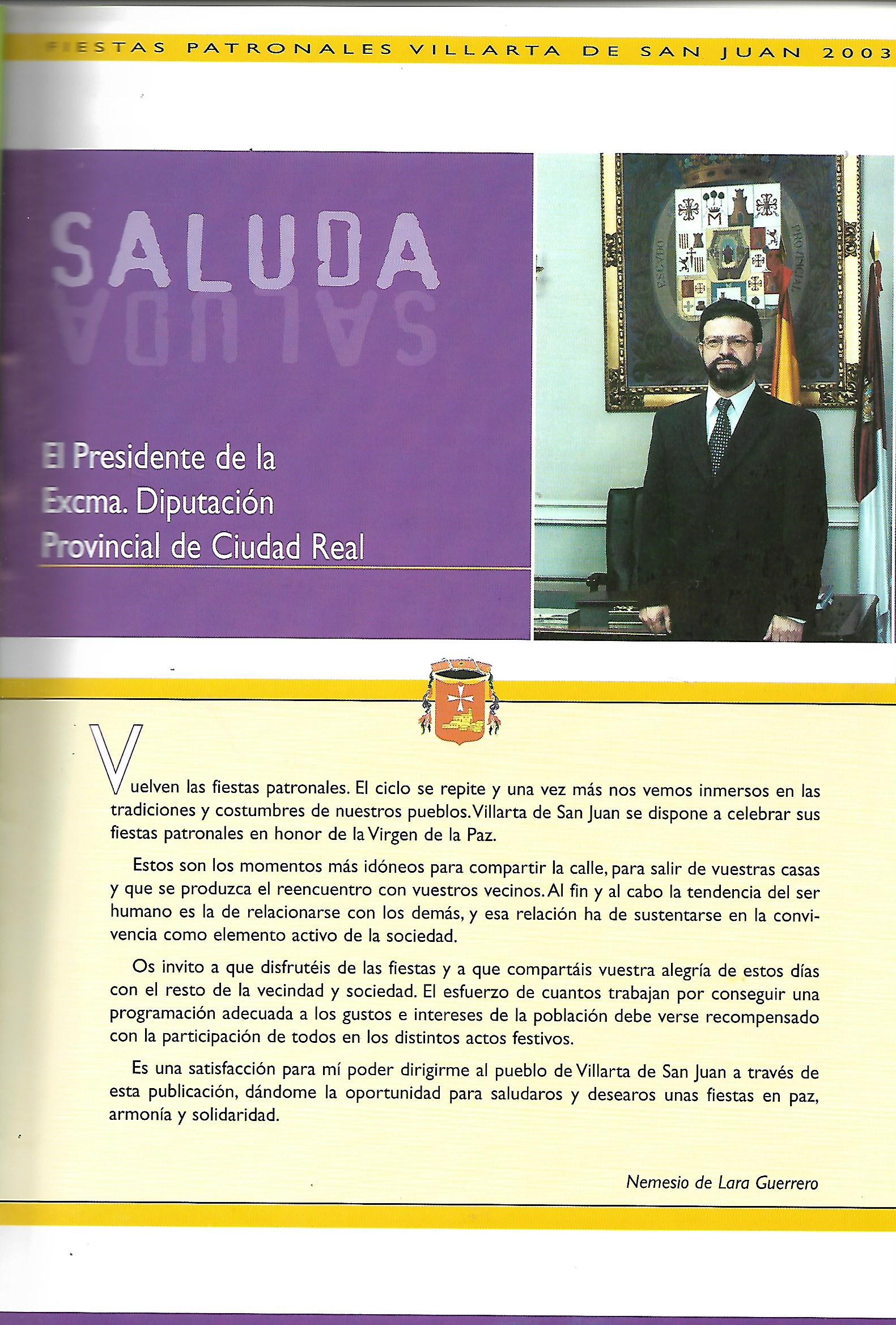 Saluda del Presidente de la Diputación Provincial 2003 Nemesio de Lara Guerrero