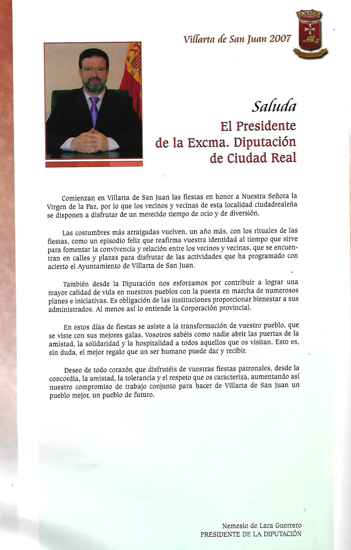 Saluda del Presidente de la Diputación Provincial 2007 Nemesio de Lara Guerrero