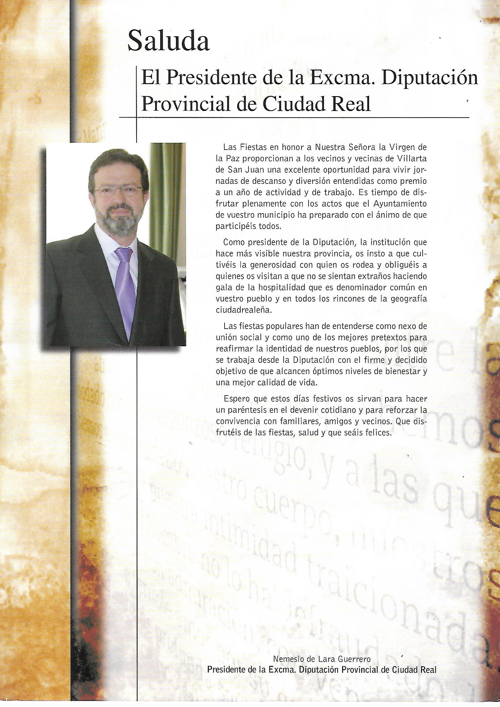 Saluda del Presidente de la Diputación Provincial 2010 Nemesio de Lara Guerrero