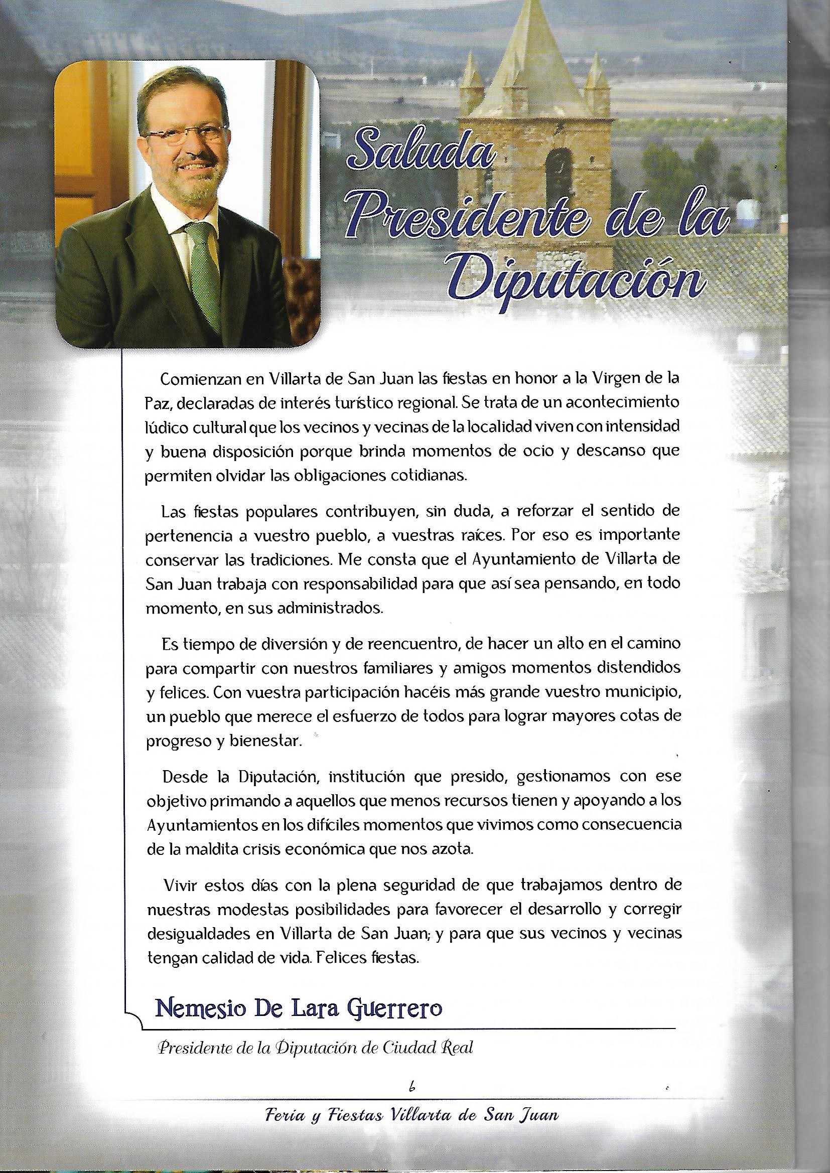 Saluda del Presidente de la Diputación Provincial 2013 Nemesio de Lara Guerrero