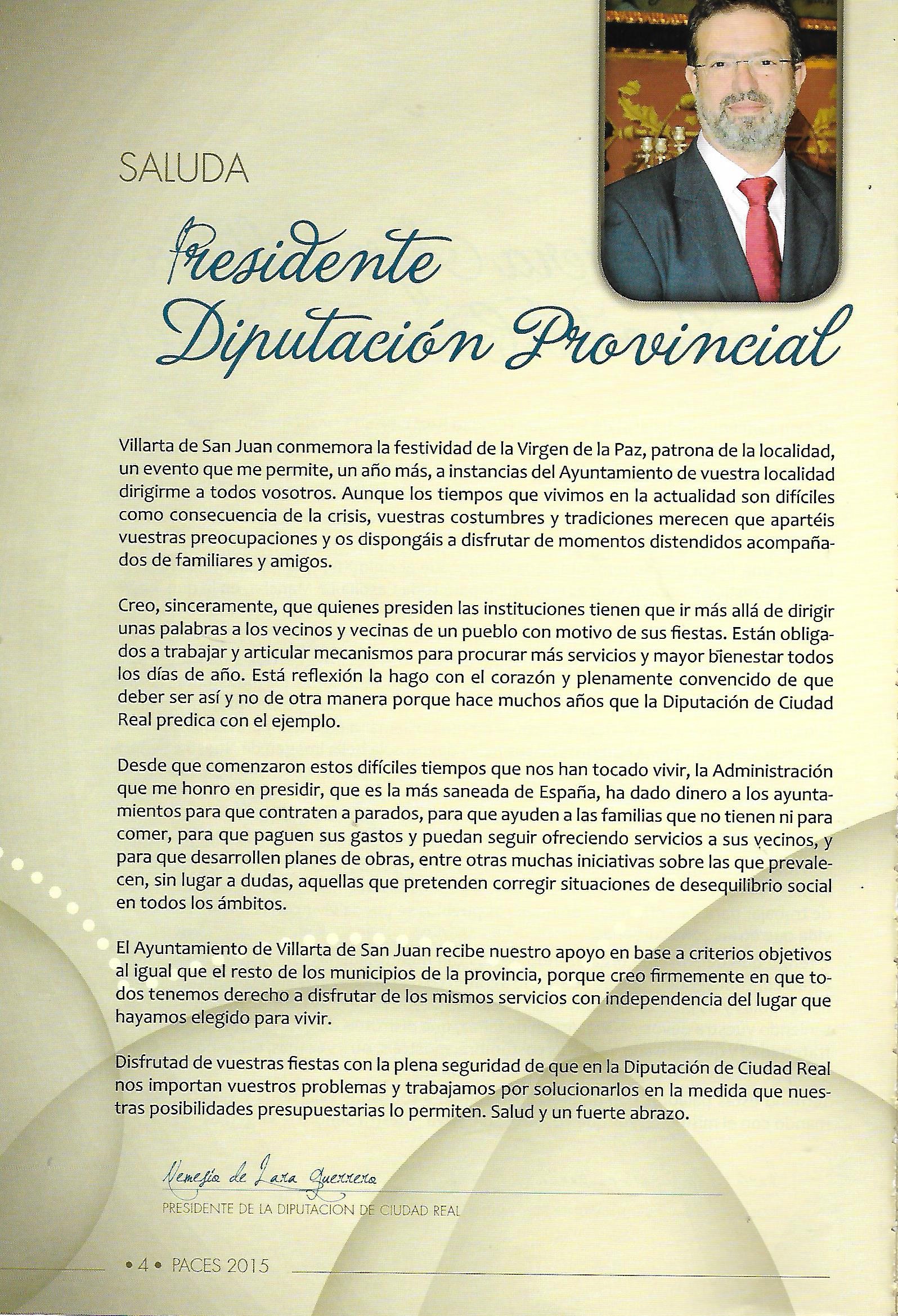 Saluda del Presidente de la Diputación Provincial 2015 Nemesio de Lara Guerrero