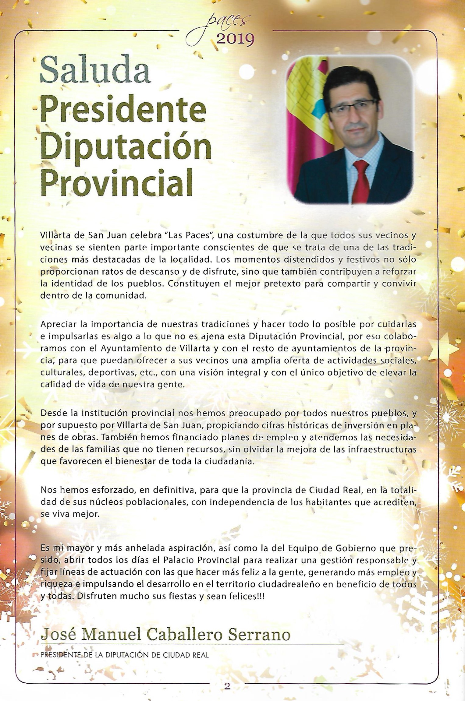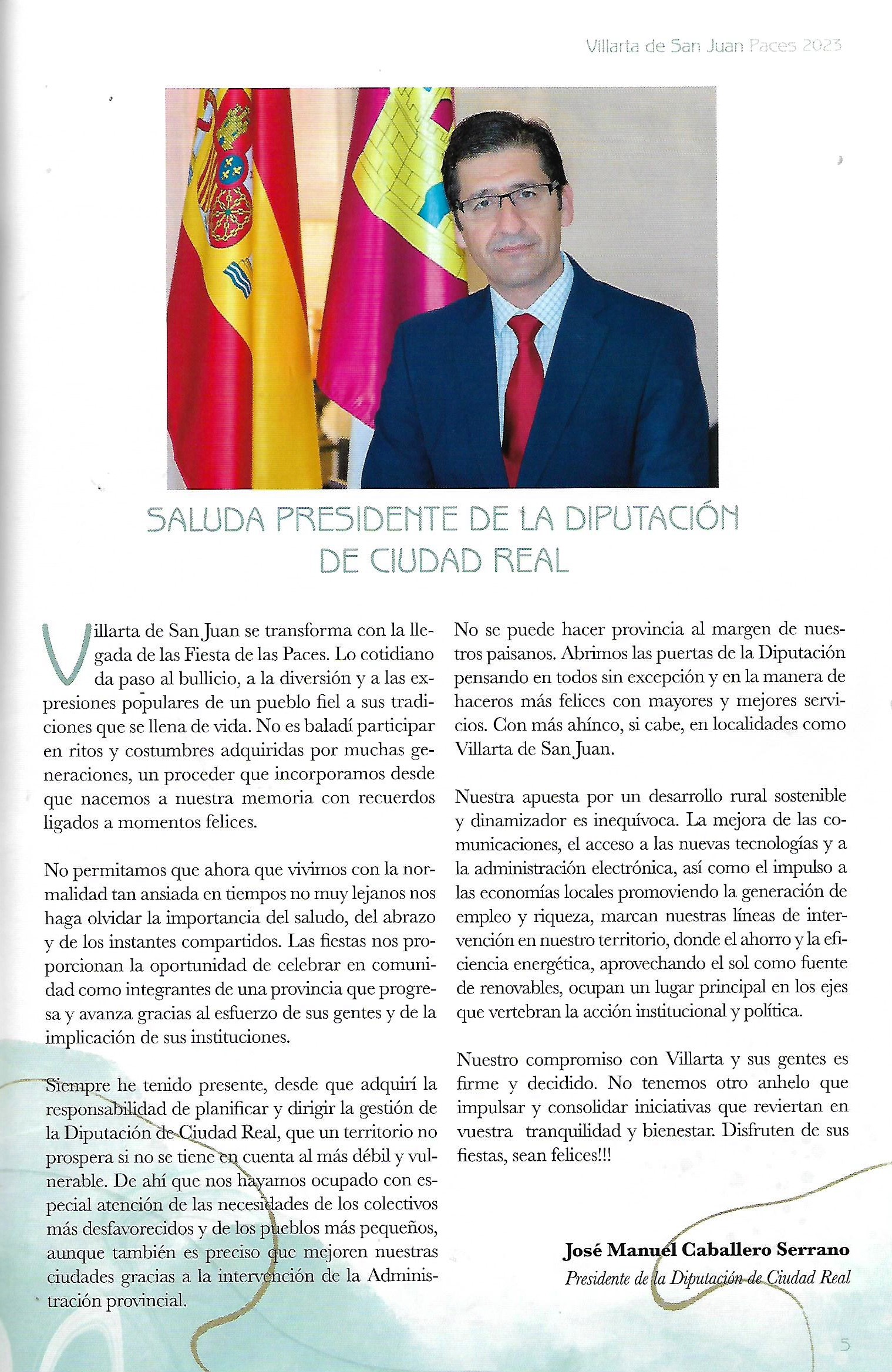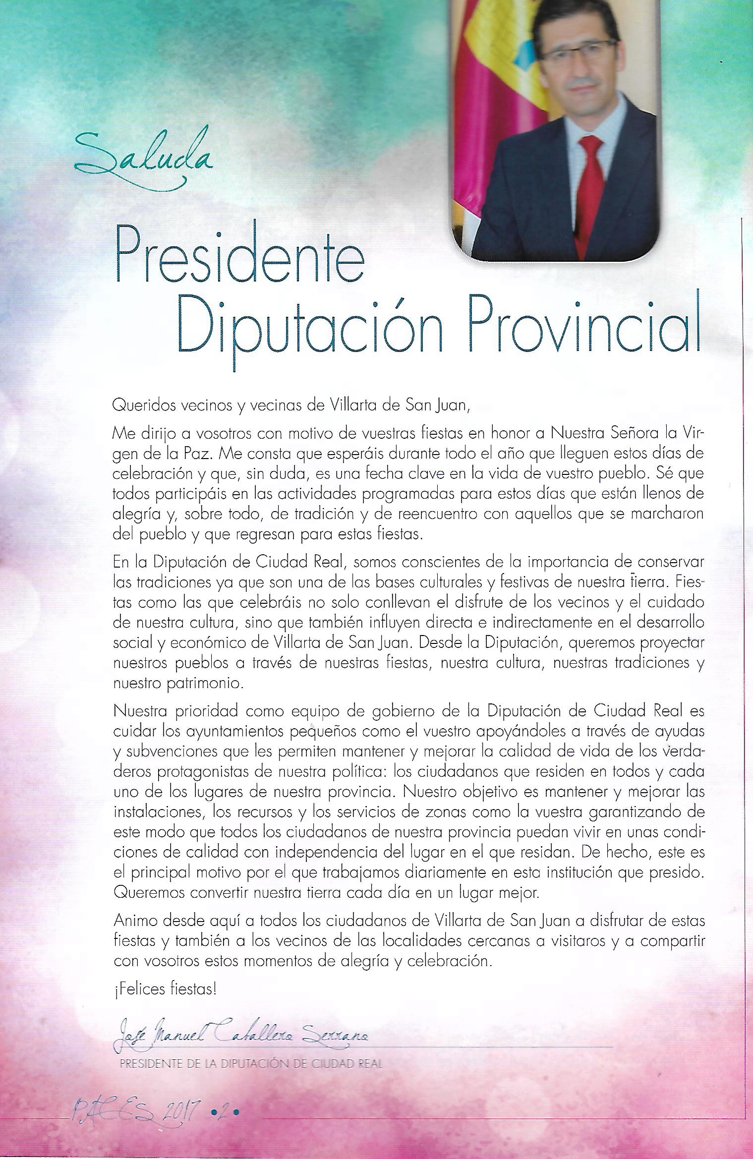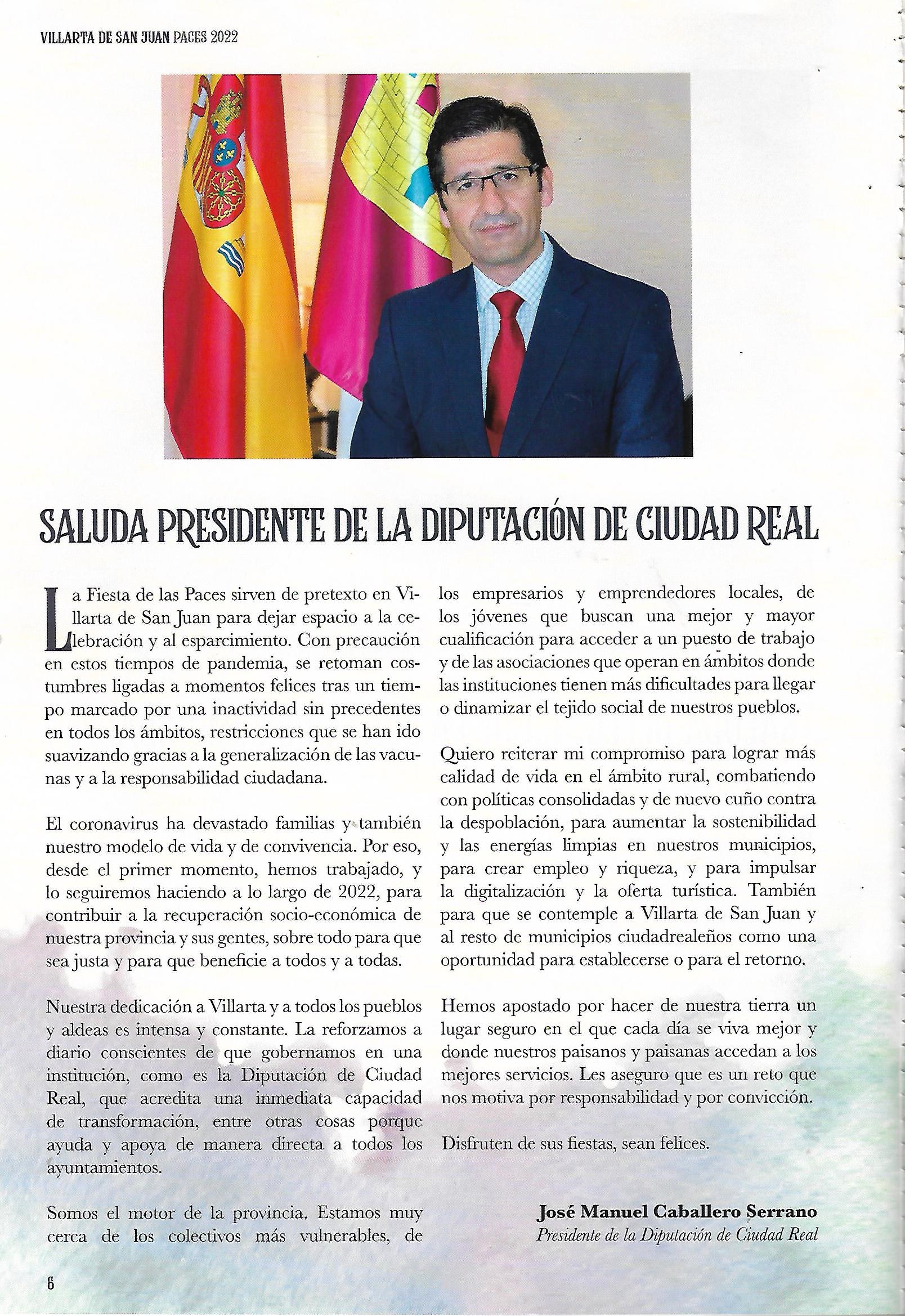Saluda del Presidente de la Diputación Provincial de Ciudad Real (Programa de San Juan Bautista de 2024)