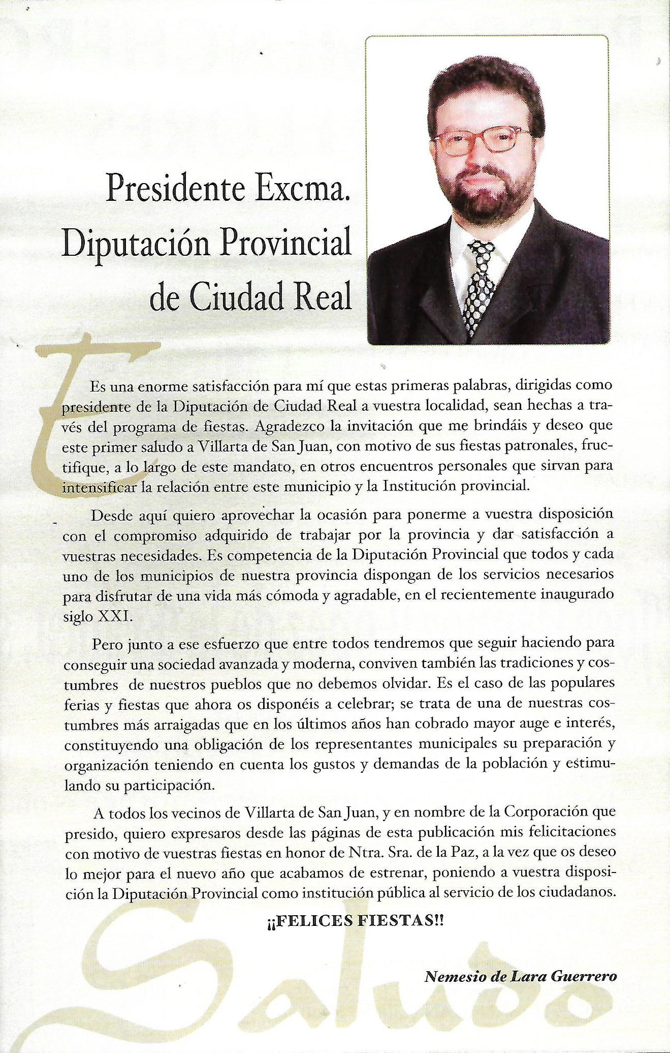 Saluda del Presidente de la Diputación Provincial 2001 Nemesio de Lara Guerrero