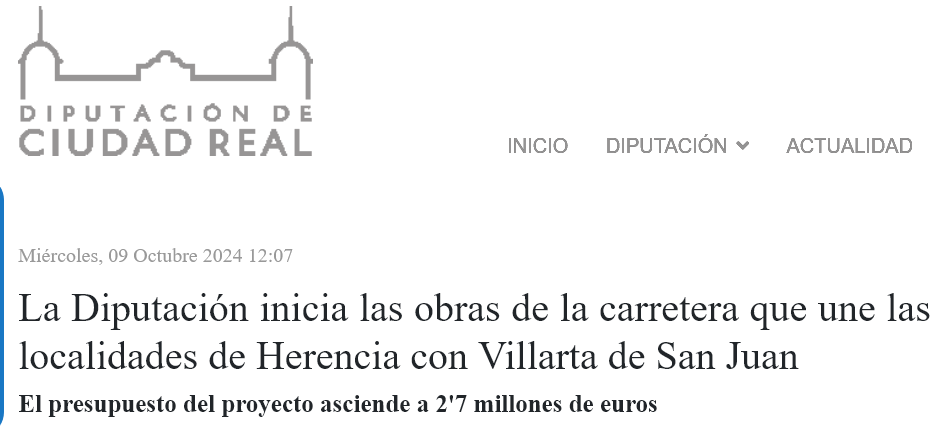 «También en Villarta de San Juan la institución provincial ha apoyado al Ayuntamiento y a distintas entidades que han solicitado colaboración. En 2024, el consistorio de vuestra localidad recibió ayudas de la Diputación por 380.000 euros, una inversión que, sin duda, se ha aplicado a mejorar la vida de sus vecinos y vecinas.»