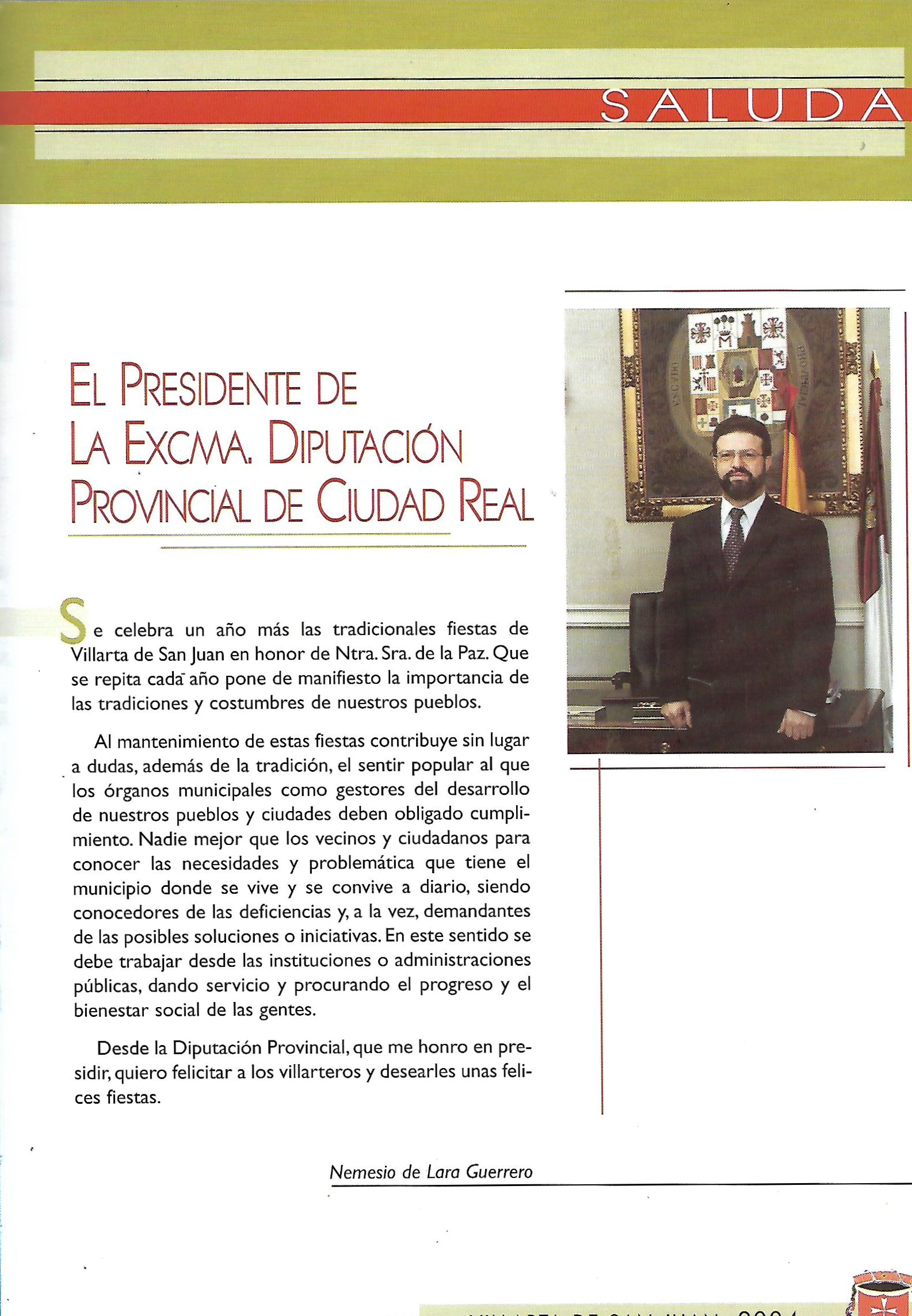 Saluda del Presidente de la Diputación Provincial 2001 Nemesio de Lara Guerrero