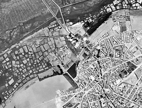 Fotograma del Vuelo áereo americano de 1956 en la que se aprecia parte de la distribución de bajeros en la vega del Gigüela de Villarta.