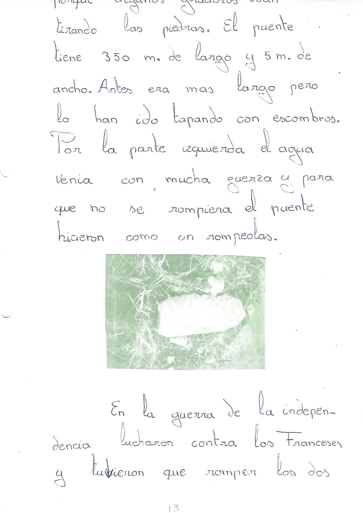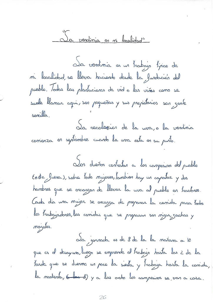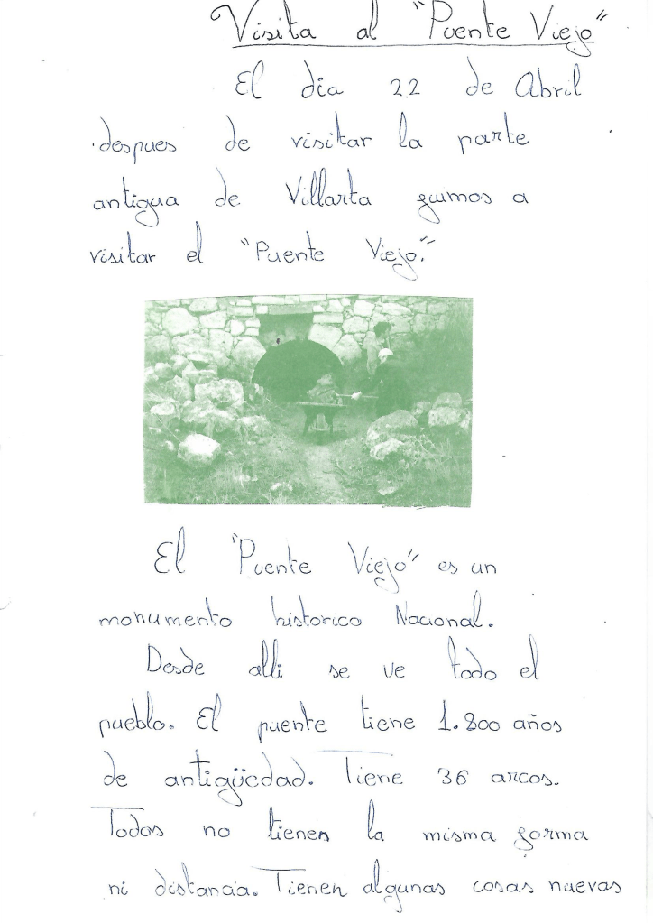 ORIGINAL MANUSCRITO DEL TRABAJO REALIZADO EL 23 DE ABRIL DE 1991 POR LOS ALUMNOS DE 4º A DEL COLEGIO Nª Sª DE LA PAZ DE VILLARTA DE SAN JUAN (CIUDAD REAL).