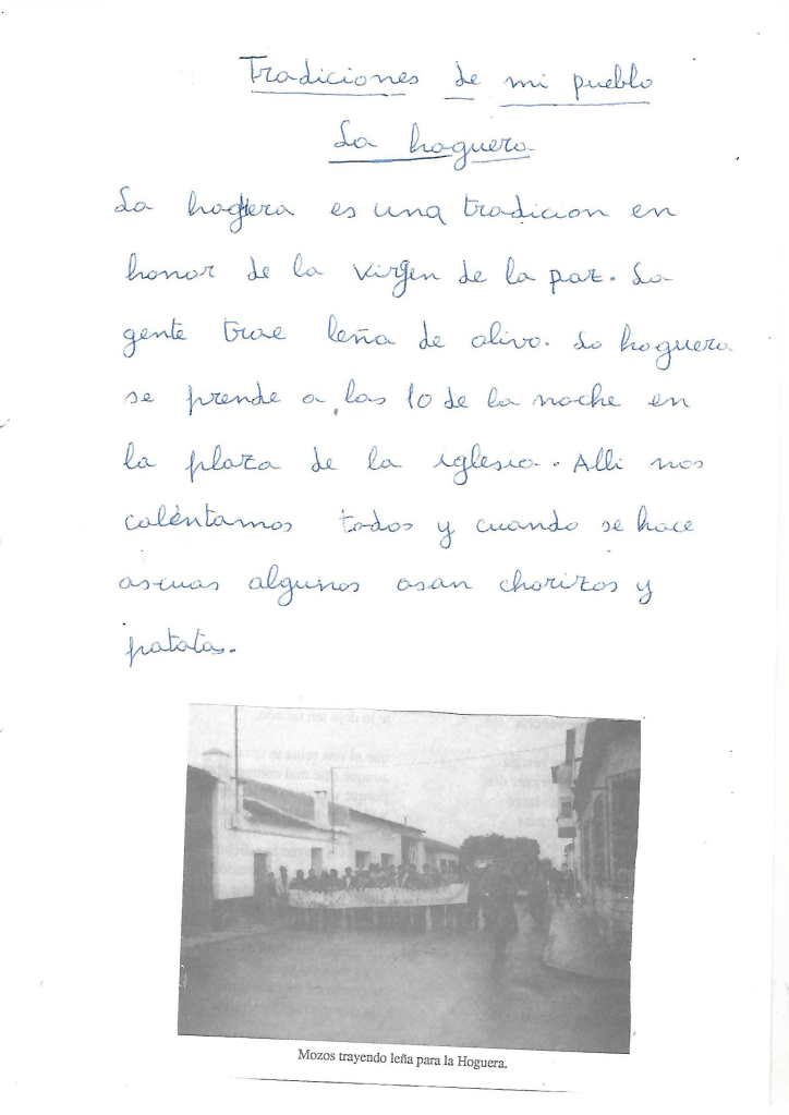 En un principio, la idea era la de transcribir este trabajo con el texto escrito con el ordenador, pero después de pensarlo más detenidamente creí que lo ideal sería presentarlo tal y como aquellos «historiadores» en el año 1991 lo dieron a conocer. Por otro lado quiero señalar que el trabajo que ellos dicen de, «cinco horas de inagotable trabajo», pues así, como ellos mismos dicen » el que lo lea y no le guste, o vea algún defecto, que piense que ha sido hecho en un solo día, pero que hemos puesto todo nuestro empeño en que salga lo mejor posible y en contaros como es o fue nuestro pueblo«. LOS AUTORES.