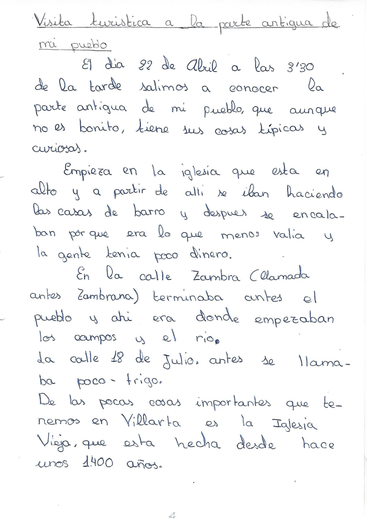 Hace 34 años, coincidiendo con la celebración del Día del Libro del año 1991. el curso de 4º A del Colegio Público Nª Sª de la Paz, junto con su profesora, decidieron escribir un libro sobre su pueblo: Villarta de San Juan. Para ello recorrieron el pueblo y después de mas de cinco horas de trabajo, contaron lo que vieron y lo que algunos villarteros le habrían contado. Todo lo que va a aparecer en este «poyete» es obra de ese curso de 4º A que en aquel año cumplían o iban a cumplir los 10 años de edad. La sorpresa de encontrar este libro me dio pie para hacer este poyete en el que mi único trabajo va a ser transcribir el texto que ellos escribieron añadiendo copia del original y detrás de cada página la transcripción del mismo para hacer la lectura más cómoda a todo el que quiere descubrir este trabajo y sobre todo hacerle recordar este trabajo del que quizás alguno se acuerde vagamente.
